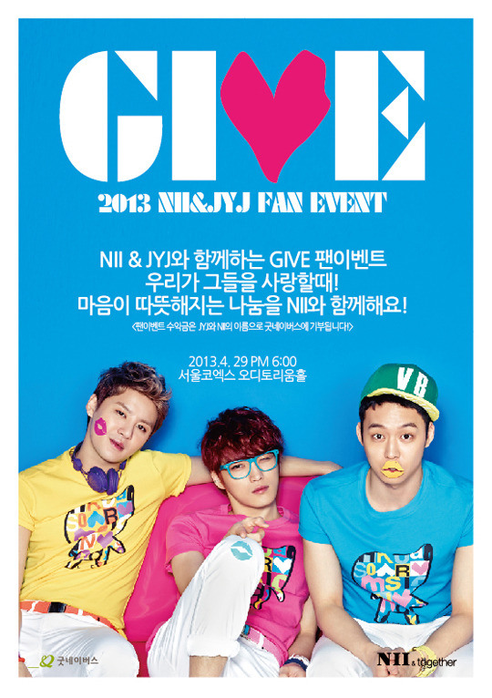 Pendant ce temps, NII tiendra le fan event avec les JYJ au Auditorium Hall dans COEX le 29 à 18h. Les profits du fan event GIVE seront versés au Good Neighbors aux noms de NII et de JYJ.