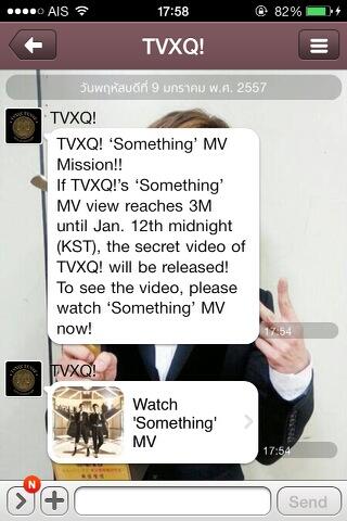Si le clip de ‘Something’ atteint les 3 millions de vue avant le 12 janvier minuit (KST), une vidéo secrète de TVXQ! sera divulguée ! Pour voir la vidéo, s’il vous plait regardez maintenant le clip de ‘Something’ !