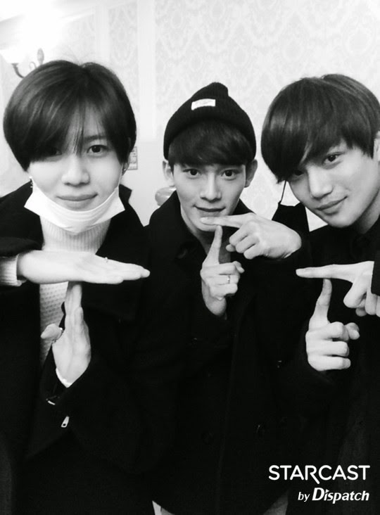 Taemin de SHINee, Chen et Kai d’EXO posant comme les autres. Quelle est la signification du ‘T’ formé par leurs mains ?