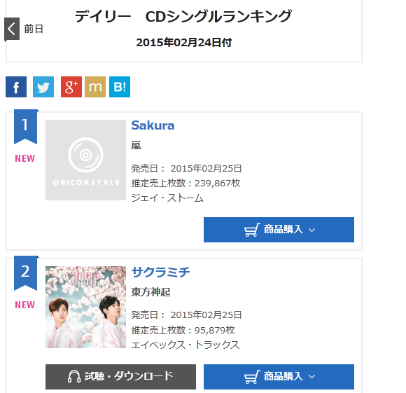 saku Publié 25 février 2015 à 580 × 561 dans [INFO] 150225 Classement Oricon journalier du 24 février : #2 Tohoshinki – « Sakuramichi » Partagez cet article Partager sur X(ouvre dans une nouvelle fenêtre) X Partager sur Facebook(ouvre dans une nouvelle fenêtre) Facebook J’aime chargement…