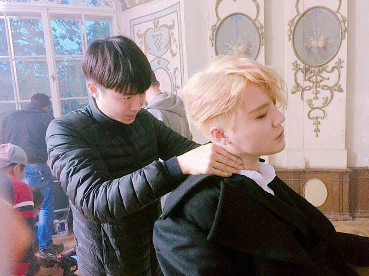 C’est l’heure du #massage pour #KimJunSu ! Ca vaut le coup, n’est-ce pas ? Il #répète si dur aujourd’hui encore ! Vous savez, le #preview de la comédie musicale ‘Dorian Gray’ arrive dans 5 jours ! Nous sommes impatients d’être au 3 septembre !